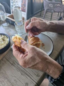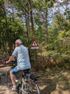 It was windy – very windy – and we decided that our 20km ride around the island might have been better served by renting e-bikes, but the people powered bikes cost 10€ and the e-bikes cost 42€ per day to use, so for the 6 hours we were on the island, the numbers seemed clear. Good ice cream shop here.